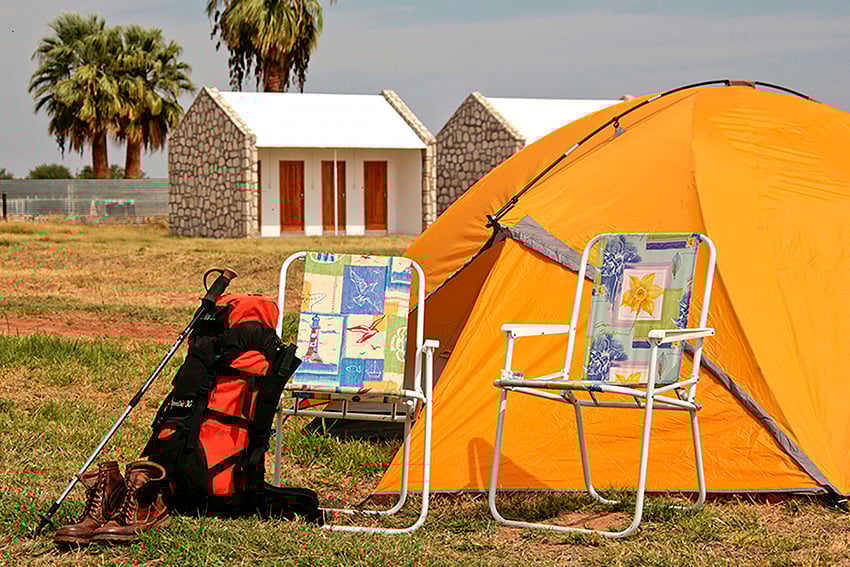 Erleben Sie eine tiefe Verbundenheit mit der Natur, wenn Sie Ihr Lager auf einem der acht Stellplätze unter Palmen aufschlagen. Jeder Zeltplatz ist mit einem Grillplatz, Steckdosen und elektrischer Beleuchtung ausgestattet. Saubere Sanitäranlagen bieten willkommene Erfrischung nach den Abenteuern in der Kalahari.