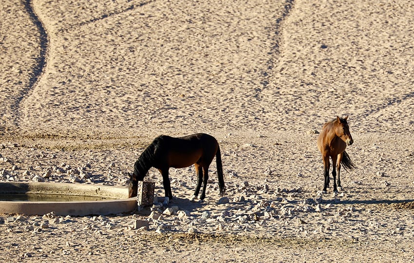 Nachdem wir uns unterwegs die lebenden Steine bei der Alten Kalköfen Lodge angeschaut haben, kommen wir gegen Nachmittag in Aus bei Klein-Aus Vista (Desert Horse Inn) an. Hier verbringen wir zwei Nächte. Die Umgebung ist ein Paradies für Wanderer, Läufer und Mountainbiker, denn hier gibt es ausgeschilderte Trails verschiedener Länge und Schwierigkeitsgrade. Aber auch wie der Name Desert Horse Inn schon verrät: Pferde! Genauer gesagt leben hier in der Nähe Wildpferde. Für uns ein Stopp, da Pferde zu meinen Lieblingstieren zählen.