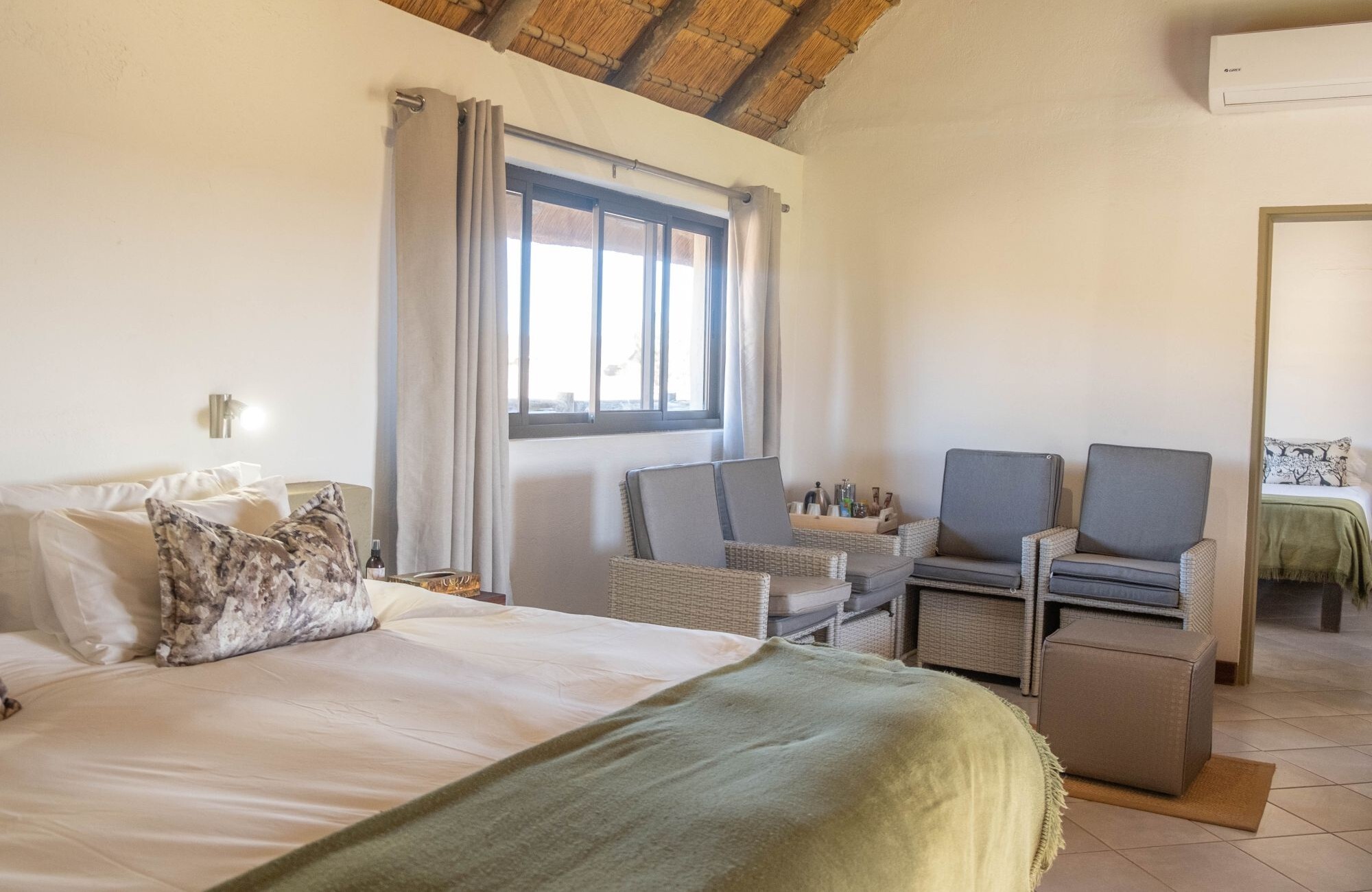 Les 22 chambres modernes (10 standards, 10 conforts et 2 familiales) offrent tout ce dont vous aurez besoin pour vos vacances en pleine nature. Installez-vous confortablement pour écouter le chant nuptial des geckos et le vent faisant danser les palmiers. Laissez-vous bercer par les bras de la Namibie sauvage.